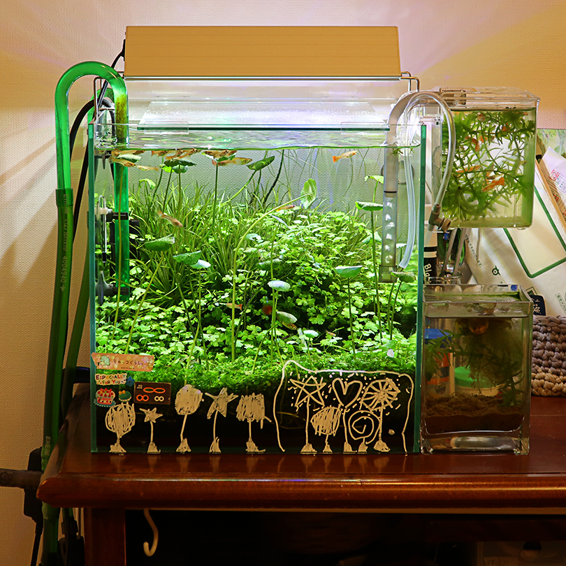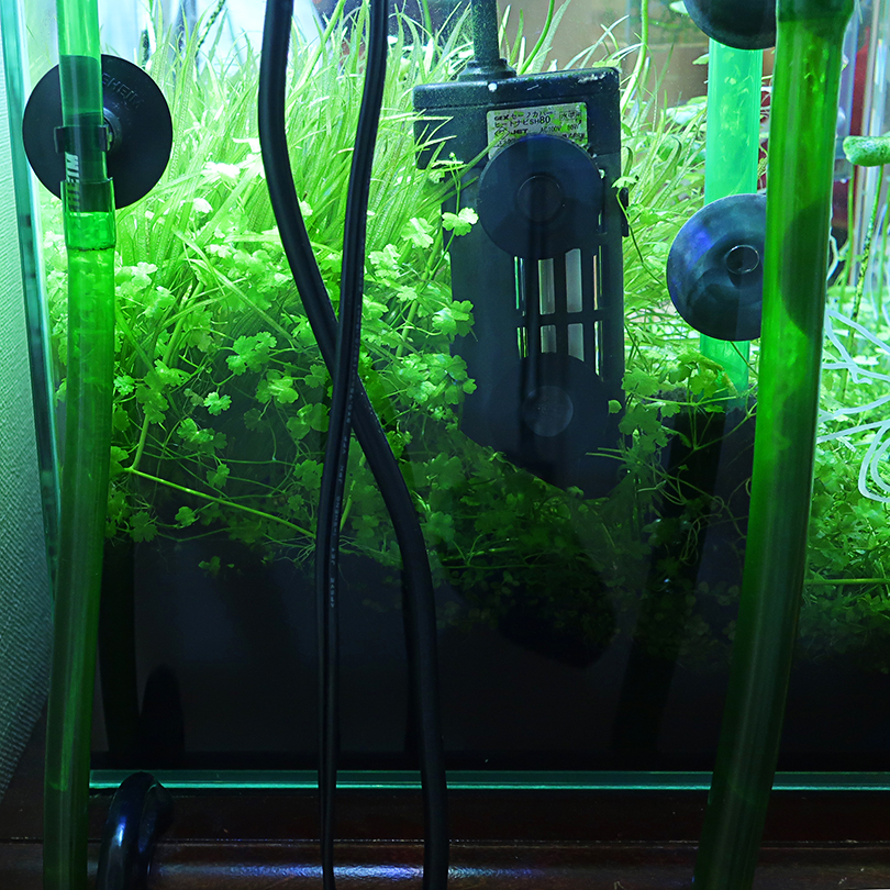 機材はあまり見せたくない部分でありながら、水質の維持には絶対に欠かせない。