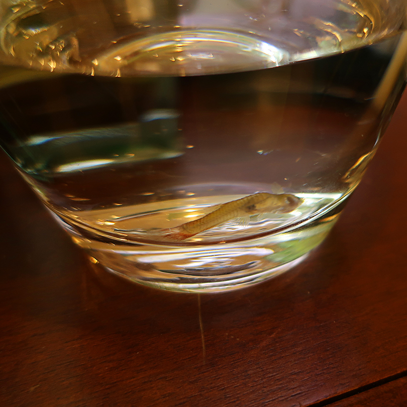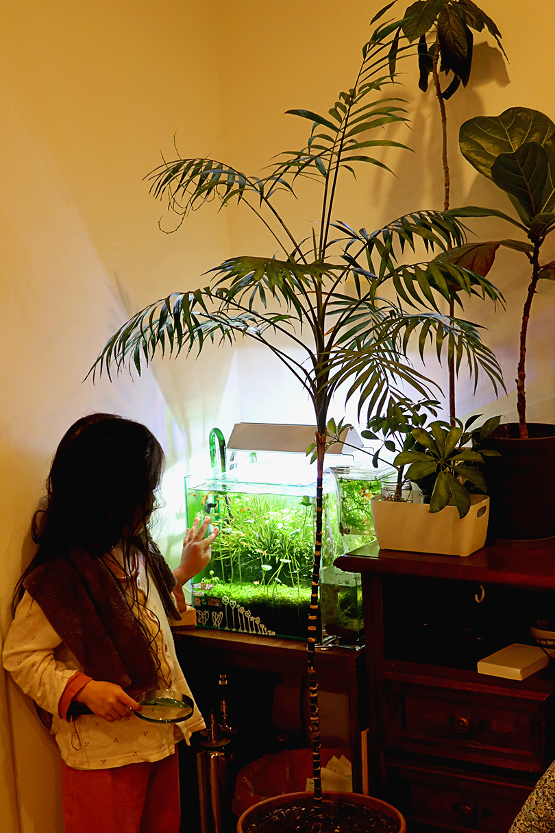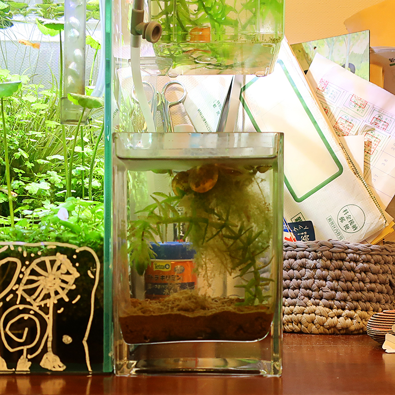 ミナミヌマエビは抱卵から20日前後で孵化するので、孵化している可能性が高いとは思うのだけど、まだ稚エビは見当たらない。