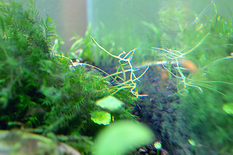 水草の生育状況もみながら、照明点灯時間や液肥添加量やCO2添加量をコントロールした方が良いのかもしれない。