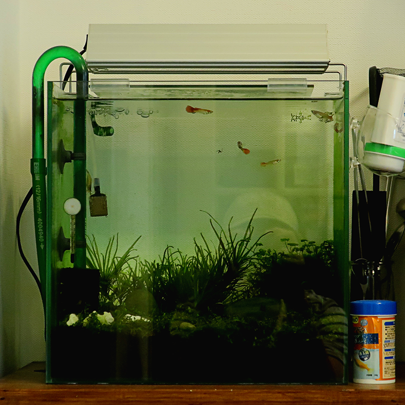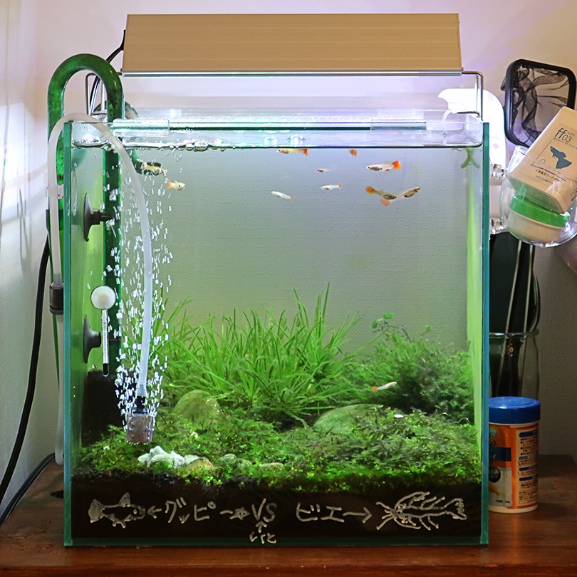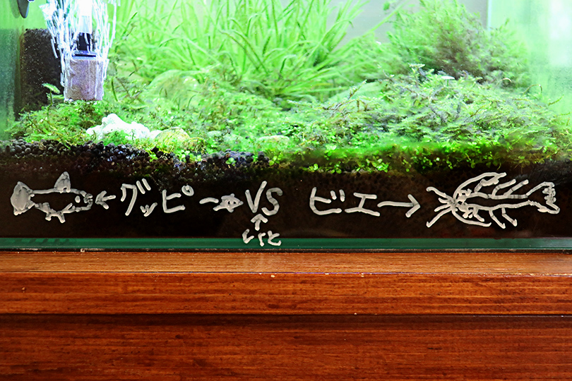 ミナミヌマエビが寿命を迎えたり、飛び出し事故があったりで、室内水槽は全滅。