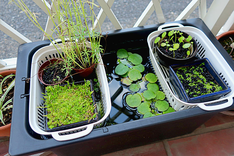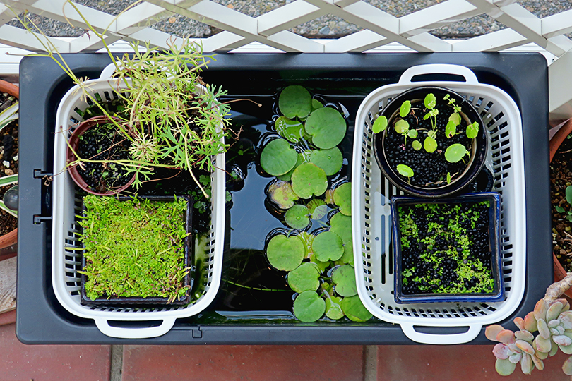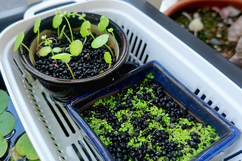 ビオトープに残ったミナミヌマエビの繁殖に期待。