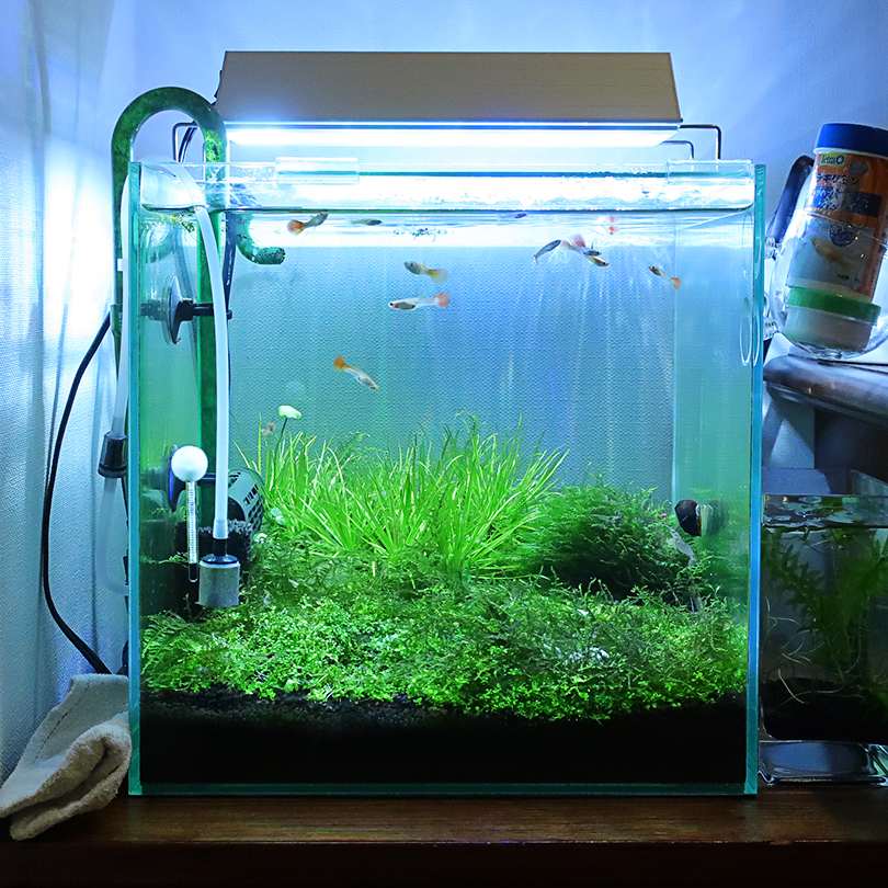 というわけで、方針が定まらないまま、とりあえず維持という状態が続いている30㌢キューブ水槽だが、致命的な崩壊なく維持できているという点に関しては、及第点ではなかろうか。