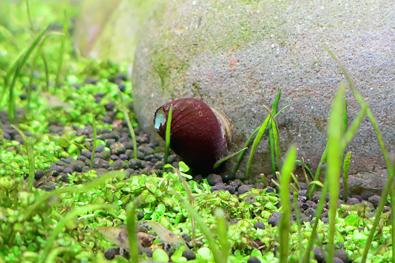 イシマキガイは寿命が1~2年ほどと言われているが、もう3年目。タンク内で一番の古株。