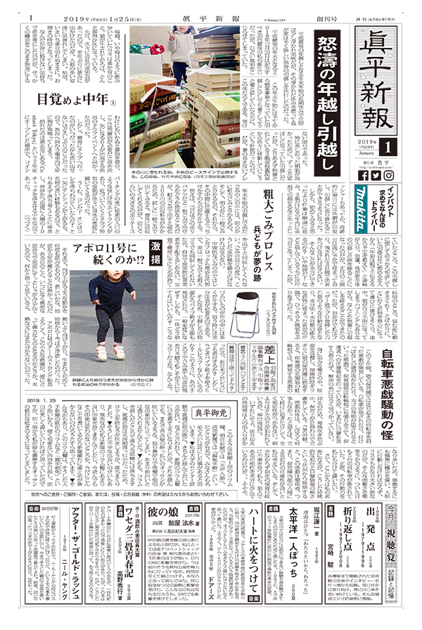 怒涛の年越し引越し / 粗大ごみプロレス 兵どもが夢の跡 / 自転車悪戯騒動の怪 / 目覚めよ中年 ① / 激撮 アポロ11号に続くのか!? / 真平御免 / 今月の視聴覚 記録と記憶
