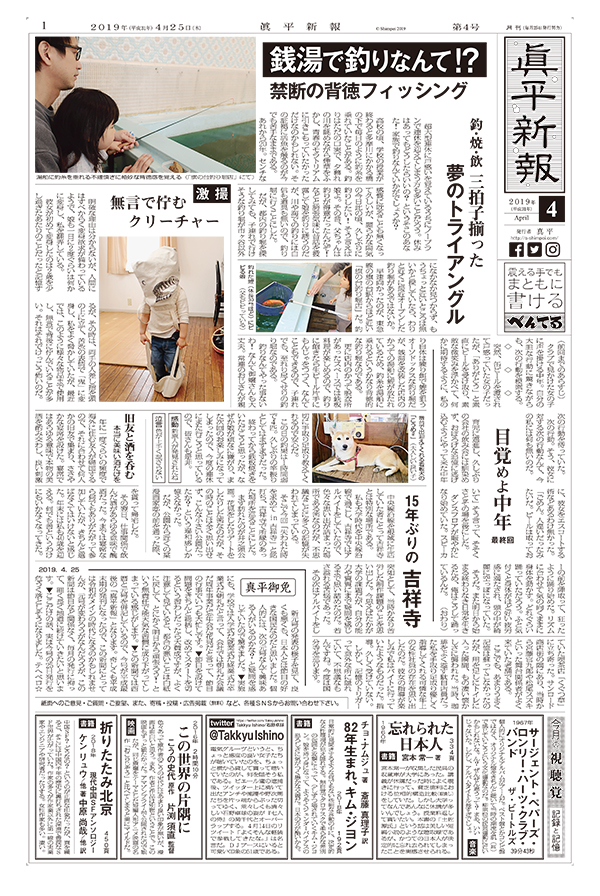 銭湯で釣りなんて!? 禁断の背徳フィッシング 釣・焼・飲 三拍子揃った 夢のトライアングル / 激撮 無言で佇むクリーチャー / 目覚めよ中年 最終回 / 15年ぶりの 吉祥寺 / 旧友と酒を呑む 本当に美味い酒だけを / 真平御免 / 今月の視聴覚 記録と記憶