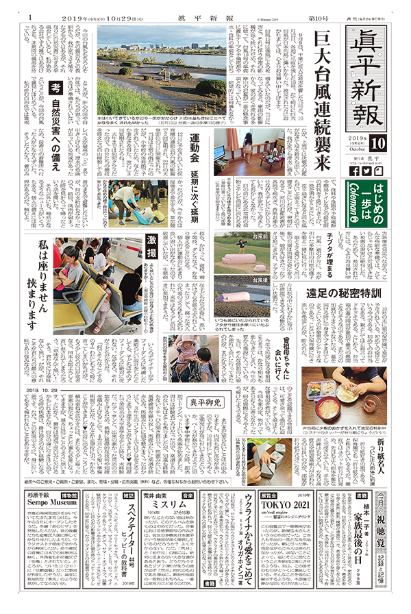 巨大台風連続襲来 子ブタが埋まる / 考 自然災害への備え / 運動会 延期に次ぐ延期 / 激撮 私は座りません 挟まります / 遠足の秘密特訓 / 曾祖母ちゃんに会いに行く / 折り紙名人 ついに正八面体に到達 / 真平御免 / 今月の視聴覚 記録と記憶