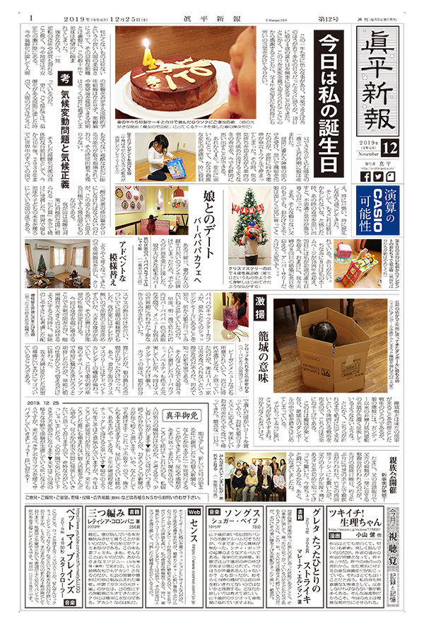 今日は私の誕生日 / 考 気候変動問題と気候正義 / 娘とのデート バーバパパカフェへ / アドベントな模様替え / 激撮 籠城の意味 / 親族会開催 新事実が発覚! / 真平御免 / 今月の視聴覚 記録と記憶