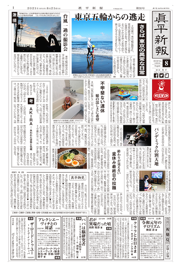 東京五輪からの逃走 さらば 東京の異常な日常 / パンデミックの別天地 / 激撮 台風一過の撮影会 / 不甲斐ない連休 娘の逞しさに希望 / 考 AKIRA ― 失われた姿勢と気概 / 終わりが見えない 盆休み最終日の拉麺 / 真平御免 / 今月の視聴覚 記録と記憶