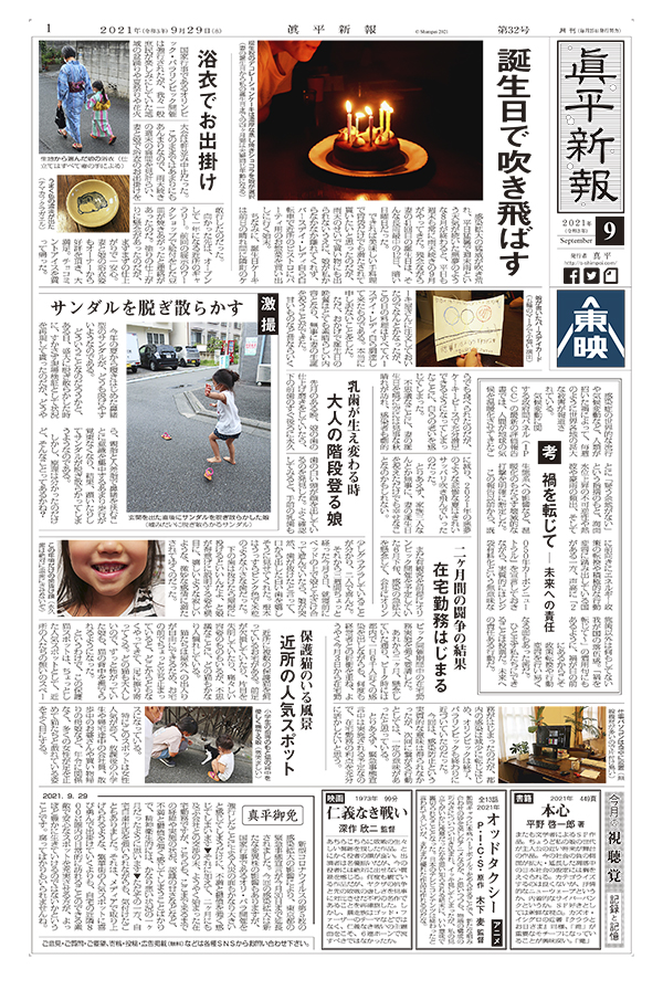誕生日で吹き飛ばす / 浴衣でお出掛け / 激撮 サンダルを脱ぎ散らかす / 考 禍を転じて ― 未来への責任 / 乳歯が生え変わる時 大人の階段登る娘 / 二ヶ月間の闘争の結果 在宅勤務はじまる / 保護猫のいる風景 近所の人気スポット / 今月の視聴覚 記録と記憶 / 真平御免