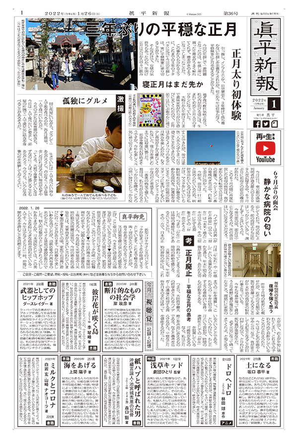 三年ぶりの平穏な正月 正月太り初体験 寝正月はまだ先か / 激撮 孤独にグルメ / 6ヶ月ぶりの面会 静かな病院の匂い / 考 正月廃止 ― 平穏な正月の愚考 / 毎年恒例の家族写真 復帰を強く思う / 真平御免 / 今月の視聴覚 記録と記憶