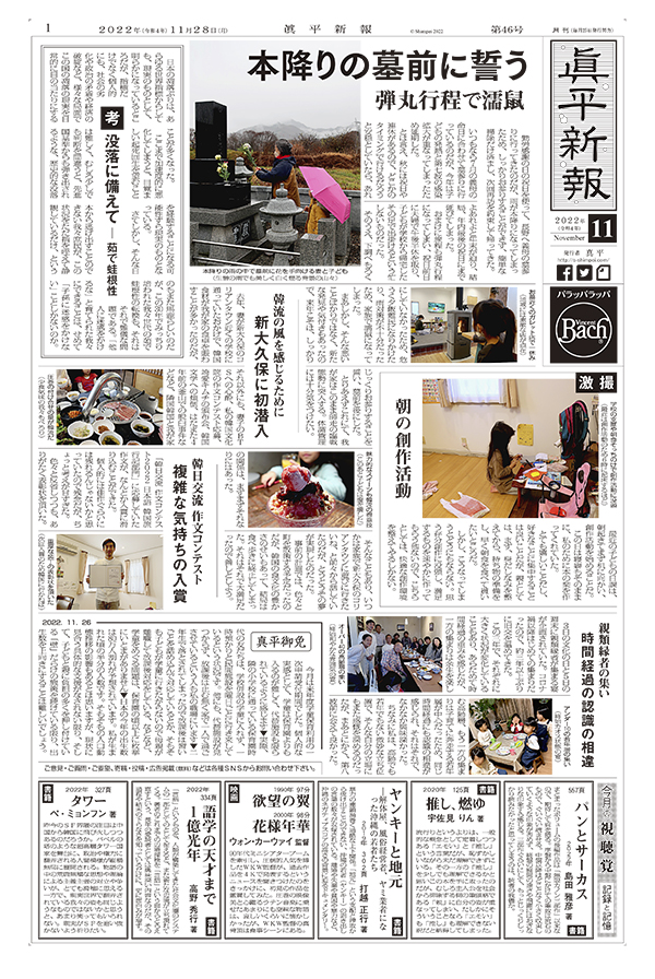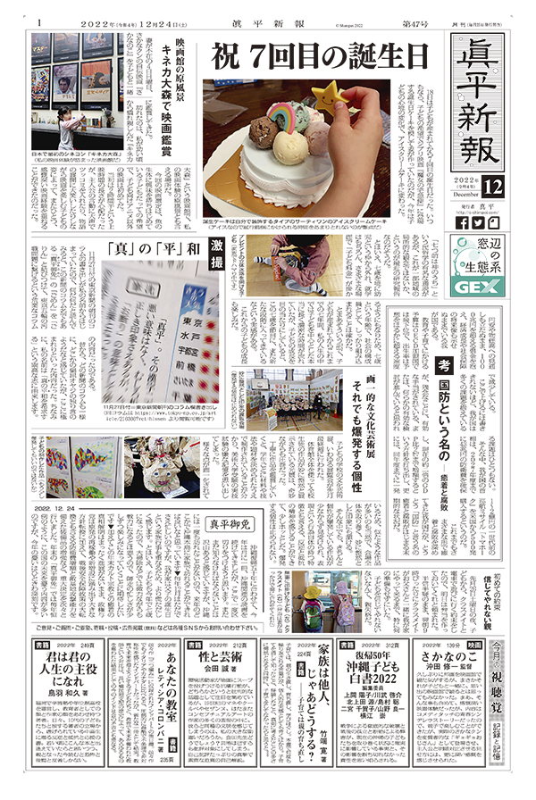 祝 7回目の誕生日 / 映画館の原風景 キネカ大森で映画鑑賞 / 激撮 「真」の「平」和 / 考 国防という名の ― 癒着と腐敗 / 画一的な文化芸術展 それでも爆発する個性 / 初めての約束 信じてやれない親 / 真平御免 / 今月の視聴覚 記録と記憶